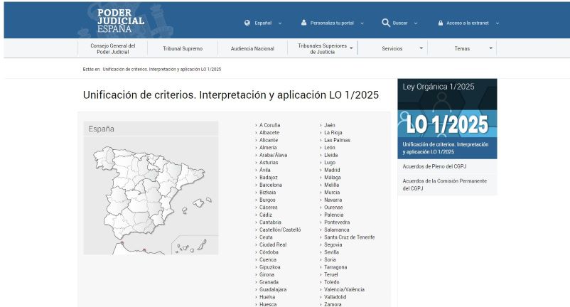 El Consejo General del Poder Judicial habilita una herramienta en su página web donde se irán publicando los acuerdos adoptados en el ámbito de las Audiencias Provinciales y los Tribunales de Instancia, en relación con la aplicación de la Ley Orgánica 1/2025, de medidas en materia de eficiencia del Servicio Público de Justicia, y MASC.